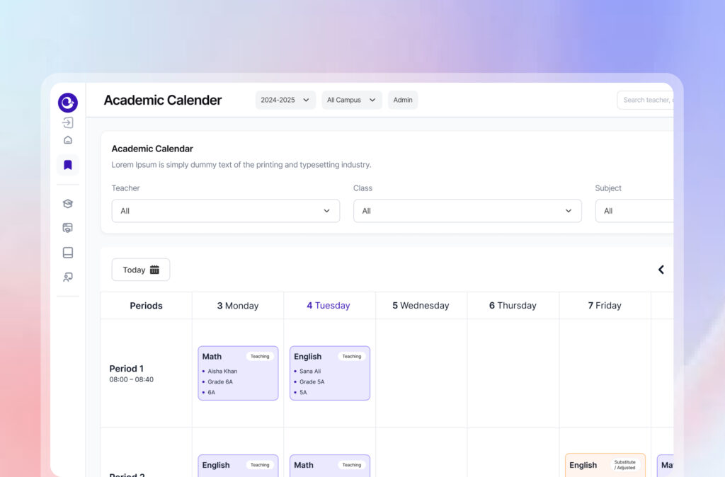 A vibrant, adaptive system that brings clarity to teaching, confidence to learning, and visibility to every role — quietly enhanced by AI.